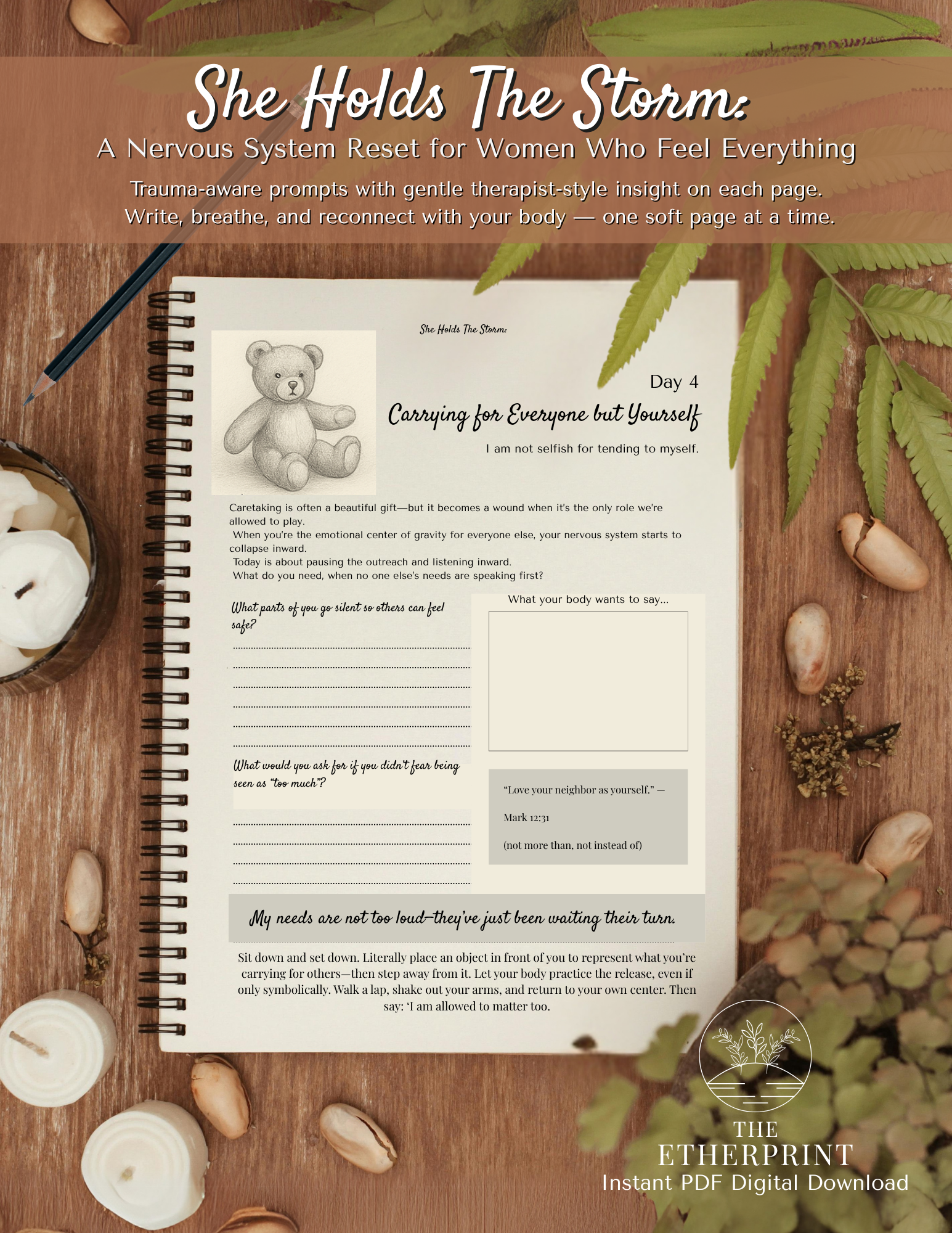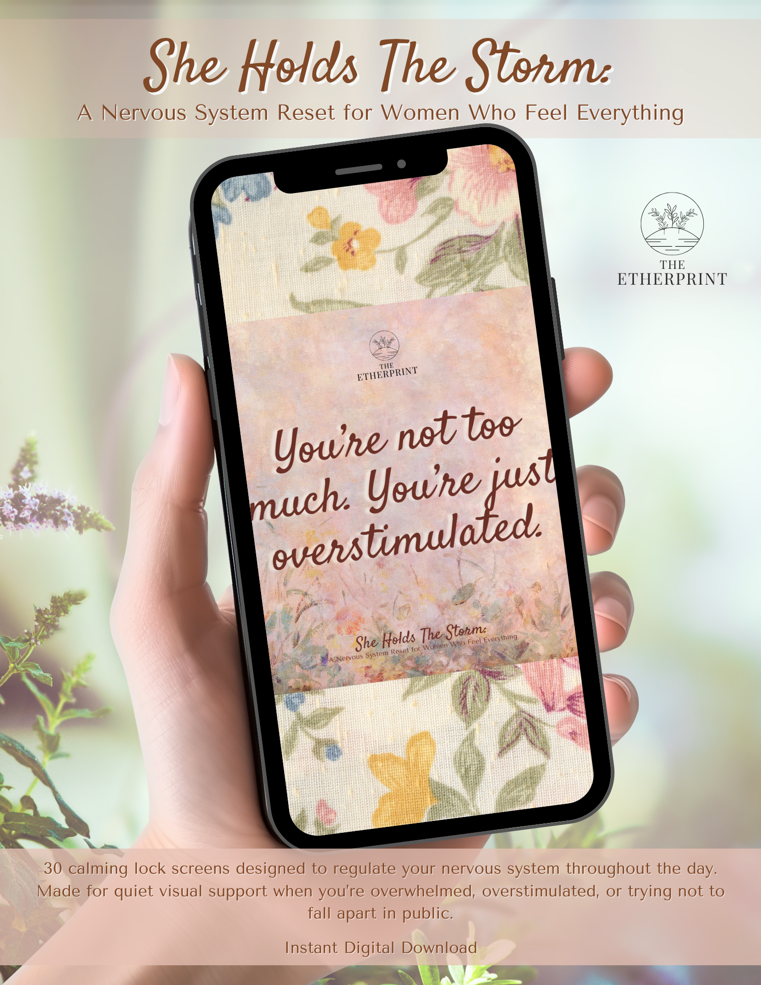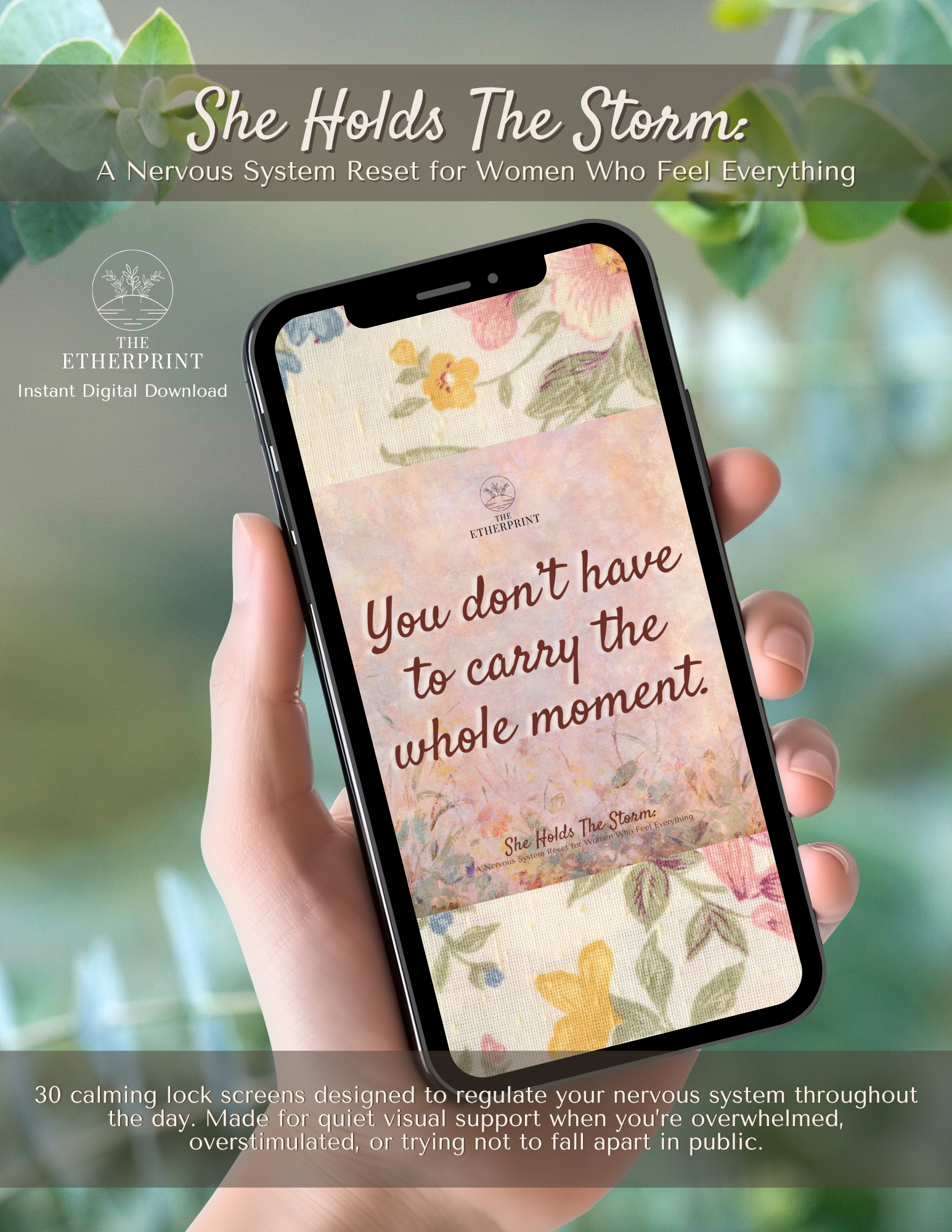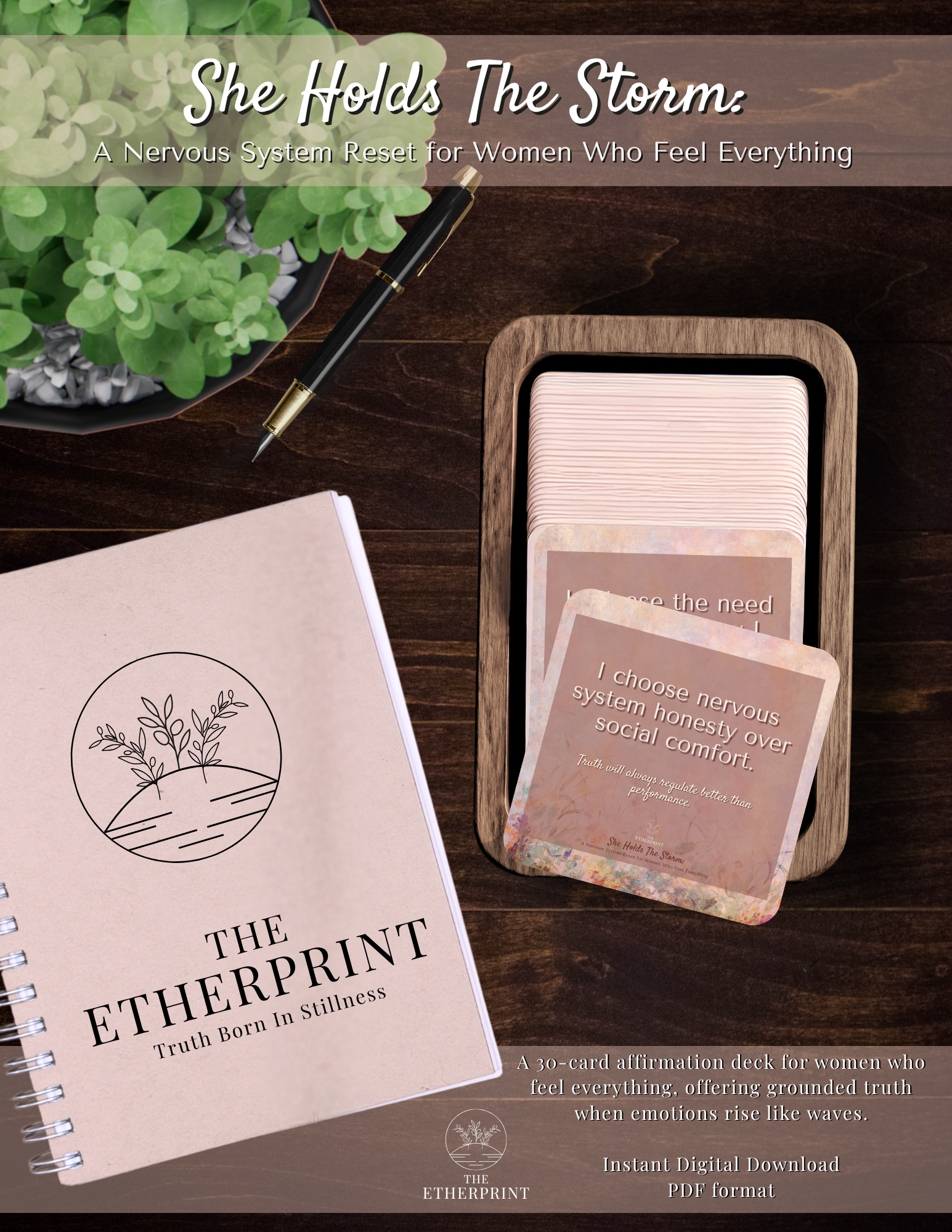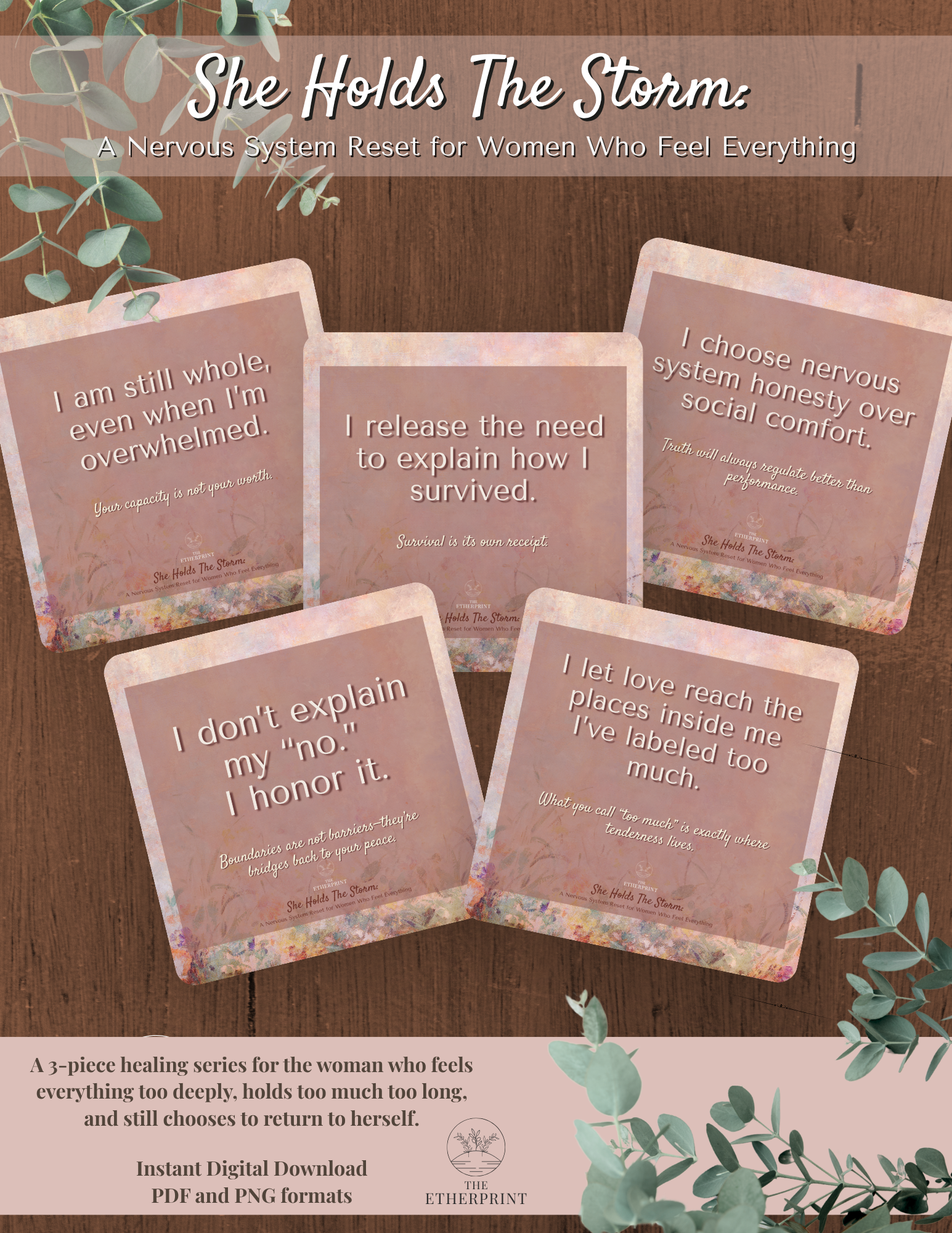For the woman who’s held it together too long, who overthinks, over-gives, and forgets to breathe—She Holds the Storm is a nervous system reset wrapped in truth, tenderness, and unapologetic depth.